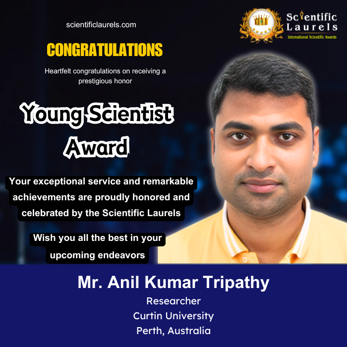 Mr. Anil Kumar Tripathy’s pioneering research in extractive metallurgy, mineral processing, and sustainable material recovery makes him highly deserving of the Young Scientist Award in Scientific Laurels. His patented technologies, academic excellence, and industrial research contributions place him among the promising researchers in metallurgical and chemical engineering.