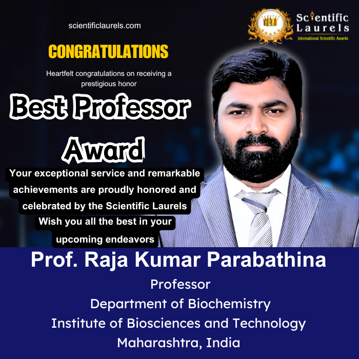 Prof. Raja Kumar Parabathina’s distinguished academic journey, innovative research contributions, and global scientific engagement make him highly eligible for the Best Professor Award in Scientific Laurels. His eligibility is strongly supported by: