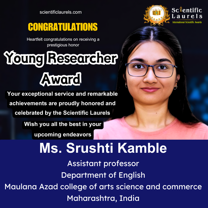 Based on her outstanding academic achievements, impactful research publications, active participation in scholarly forums, and commitment to innovative pedagogy, Ms. Srushti Kamble is highly eligible for the Young Researcher Award by Scientific Laurels.