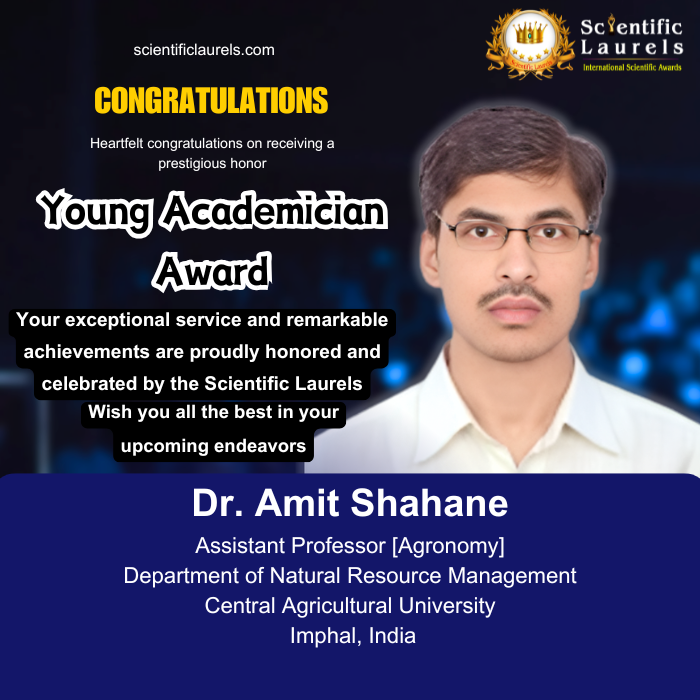 Dr. Amit Shahane is highly eligible for the Young Academician Award (Scientific Laurels) due to his consistent academic excellence, impactful research contributions, and active participation in national and international scientific platforms. His recognition through prestigious presentation awards, along with a substantial number of research publications and conference contributions, demonstrates his dedication to advancing agronomic sciences. Furthermore, his focus on climate-resilient and sustainable agricultural practices addresses critical global challenges, making him a deserving candidate for this honor.
