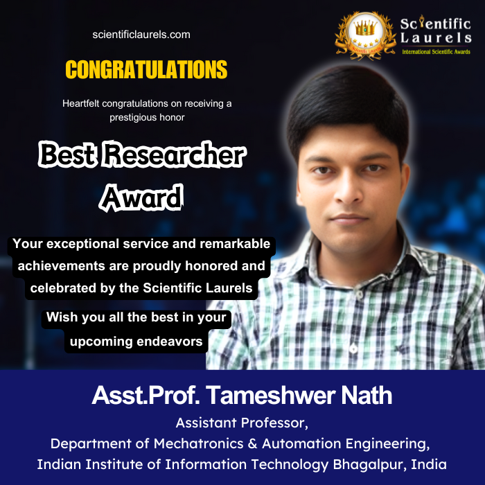 Dr.Tameshwer Nath is currently serving as an Assistant Professor in the Department of Mechatronics and Automation Engineering at the Indian Institute of Information Technology (IIIT) Bhagalpur, Bihar, since 18 September 2020.