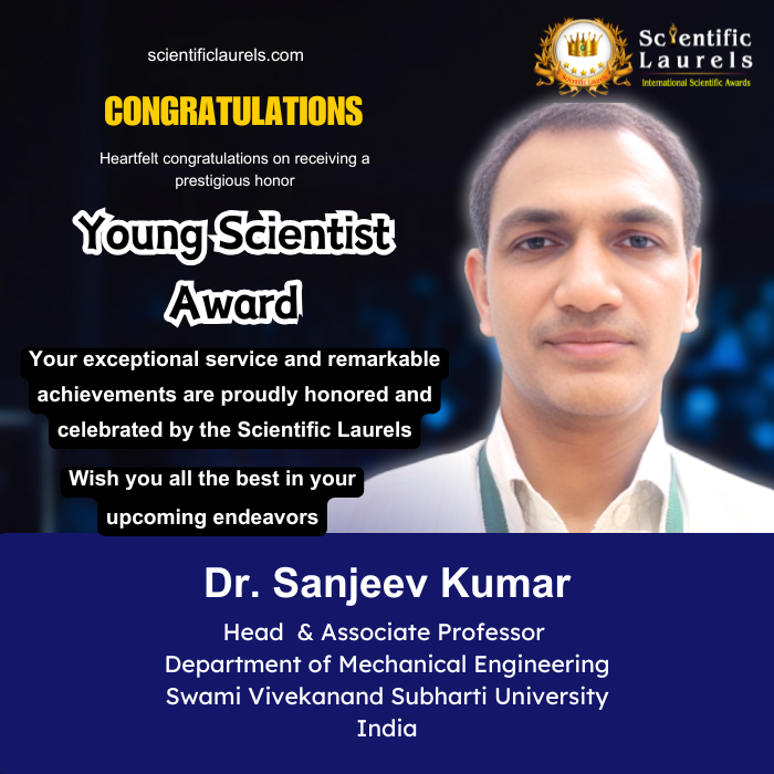 Based on his high-impact SCI publications, internationally published book chapters, multiple patented innovations, interdisciplinary research contributions, academic leadership roles, and active engagement in professional development, Dr. Sanjeev Kumar is highly eligible for the Young Scientist Award under Scientific Laurels. His work demonstrates originality, societal relevance, innovation, and sustained scientific contribution at a relatively early stage of his academic career.