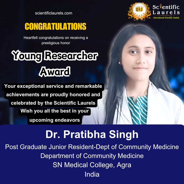 Dr. Pratibha Singh is highly eligible for the Young Researcher Award in Scientific Laurels due to her early and impactful engagement in public health research, multiple peer-reviewed publications, authorship of a scholarly book, and national-level academic recognition by the National Medical Commission. Her consistent involvement in CME programs, workshops, and interdisciplinary training, combined with active community service and research excellence, demonstrates exceptional promise, originality, and leadership as an emerging researcher in Community Medicine and Public Health.