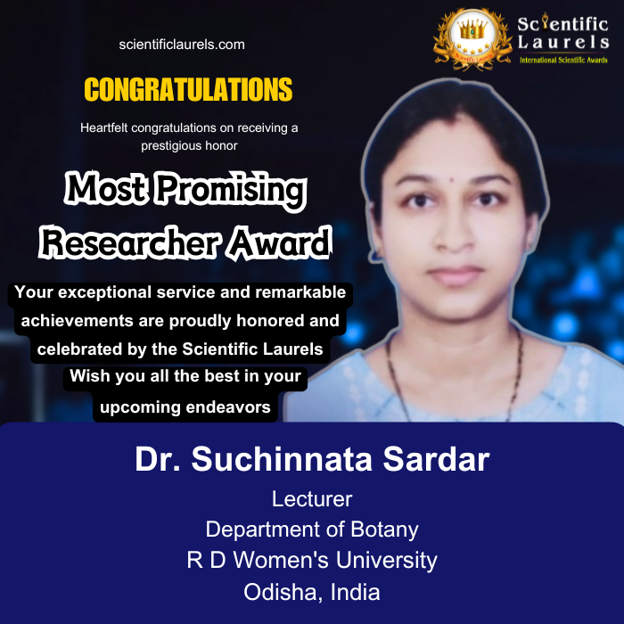 Dr. Suchinnata Swapnasarita Sardar is a distinguished academician and researcher serving as Lecturer in Botany under the Department of Higher Education, Government of Odisha, India. With 20 years of teaching experience, 18 years of research experience, and 10 years of administrative and executive responsibilities, she has made sustained contributions to higher education and scientific research. Her core areas of expertise include Molecular Taxonomy, Genetic Engineering, Molecular Biology, Biochemistry, and Molecular Plant–Microbe Interactions. She has taught key postgraduate and undergraduate courses such as Genetics, Molecular Biology, Biochemistry, and Genetic Engineering, shaping generations of students in life sciences.