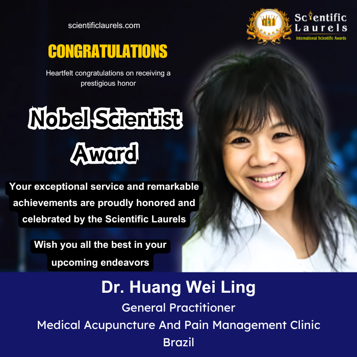 Dr. Huang Wei Ling's expertise and commitment to advancing medical knowledge through a fusion of Eastern and Western healing methods make her a deserving candidate for the Nobel Scientist Award under the Scientific Laurels recognition.