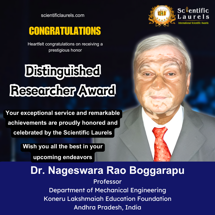 In recognition of his outstanding research contributions, extensive publication record, mentorship, and service to scientific and engineering communities, Dr. B. Nageswara Rao is eminently eligible for the “Distinguished Researcher Award” under Scientific Laurels. His prolific career, both in government research and academia, sets a benchmark for excellence and innovation.