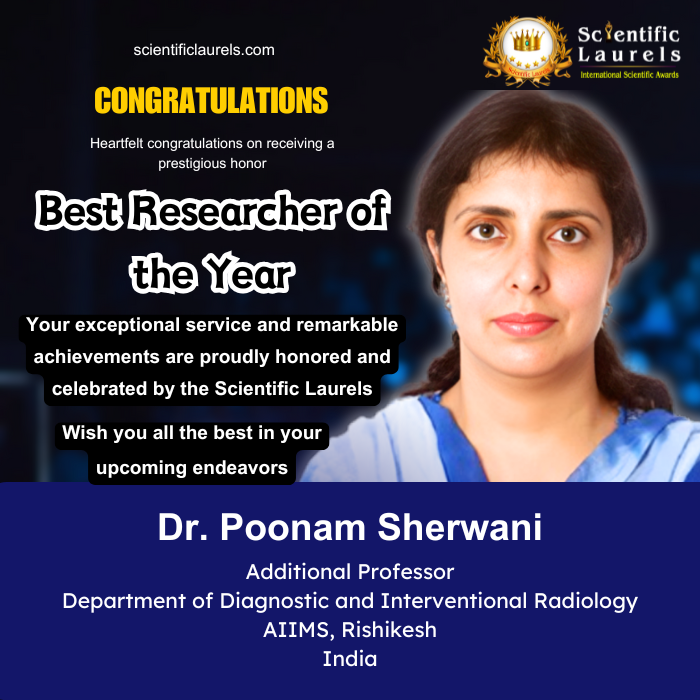 With her outstanding research productivity, sustained academic leadership, international recognition, and transformative contributions to pediatric and interventional radiology, Dr. Poonam Sherwani is highly eligible for the Best Researcher of the Year award under Scientific Laurels. Her work exemplifies excellence in research, innovation, mentorship, and global academic impact.