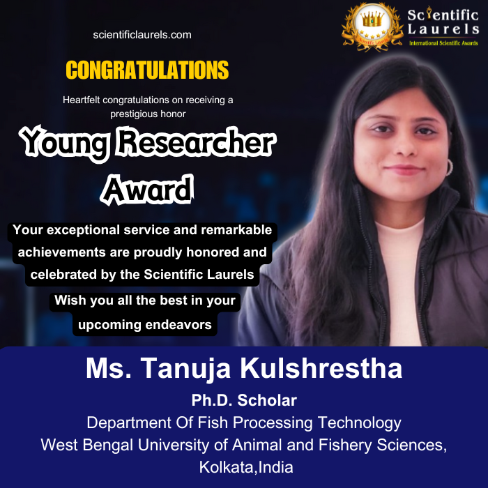 Ms. Tanuja Kulshrestha is an emerging researcher in fisheries science and food technology, with a strong academic foundation shaped by her studies under the ICAR system. She has been a recipient of the ICAR-NTS (PG) Merit Scholarship, recognizing her academic excellence and research potential during postgraduate studies. Her research work focuses on innovative applications of fish proteins, seafood processing, functional foods, and sustainable technologies for quality enhancement and waste minimization in the fisheries sector.
