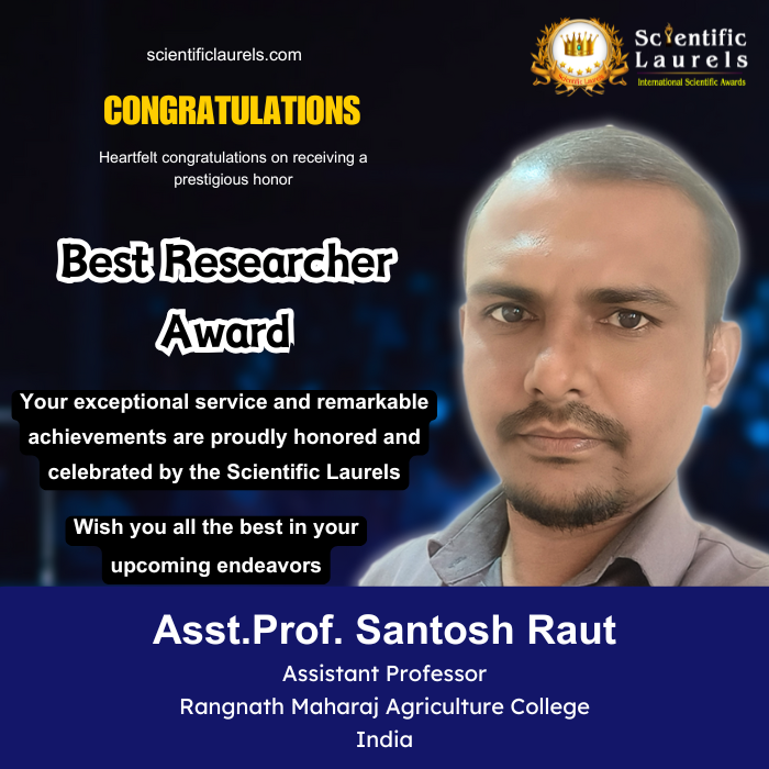 With significant research publications, impactful books, and active participation in academic forums, Asst. Prof. Santosh Raut exemplifies dedication to advancing agricultural science. His achievements align with the vision of Scientific Laurels, making him a strong candidate for the Best Researcher Award.