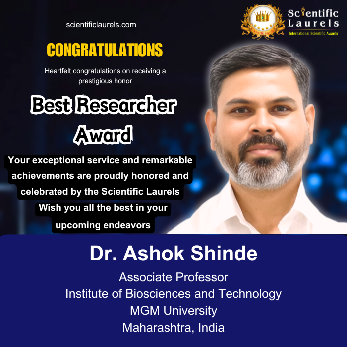 Dr. Ashok Shinde is an accomplished academician and researcher currently serving as an Associate Professor in Biotechnology at MGMU Institute of Biosciences and Technology since 1st December 2022. With a strong academic foundation and professional commitment, he has accumulated 15 years of teaching experience and 3 years of dedicated research experience, contributing significantly to higher education and scientific advancement.
