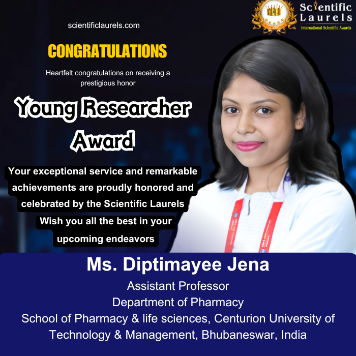 Ms. Diptimayee Jena is highly eligible for Young Researcher–oriented awards and scientific laurels due to her strong research productivity, patent portfolio, interdisciplinary contributions, and international recognition. Her achievements—including multiple patents, numerous high-quality publications, active conference participation, and prior awards—clearly establish her as a promising young scientist making meaningful contributions to pharmaceutical sciences and innovative drug-delivery research. Her demonstrated excellence, innovation, and scientific impact make her a competitive and deserving candidate for Young Researcher Award, Scientific Achiever Award, and other early-career scientific honors.