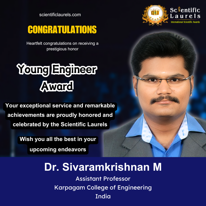 With his outstanding contributions to engineering research, teaching, and professional development, Dr. Sivaramkrishnan M is highly eligible for the Young Engineer Award from Scientific Laurels. His dedication to advancing Electrical and Electronics Engineering makes him a distinguished candidate for this prestigious honor.