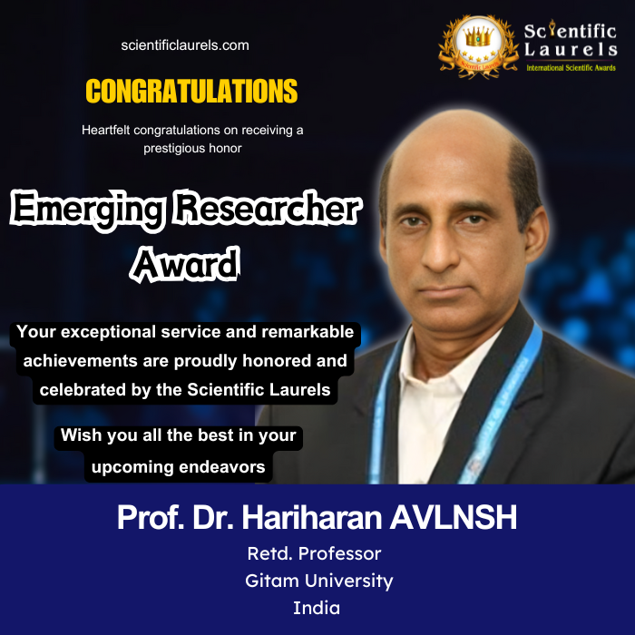 With his prolific teaching career, extensive research experience, sponsored projects, impactful publications, and dedicated mentorship of young researchers, Prof. Dr. Hariharan Avlnsh is highly eligible for the “Emerging Researcher Award” under Scientific Laurels. His ongoing research publications (2024–2025) and active involvement in scholarly writing reflect his continued commitment to advancing scientific knowledge even after retirement